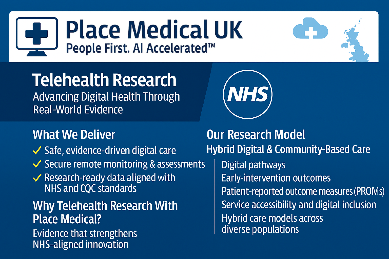 Place Medical UK is a hybrid health and social care provider delivering GP, Nursing and Mental Health services through Telehealth and in-person clinical teams.